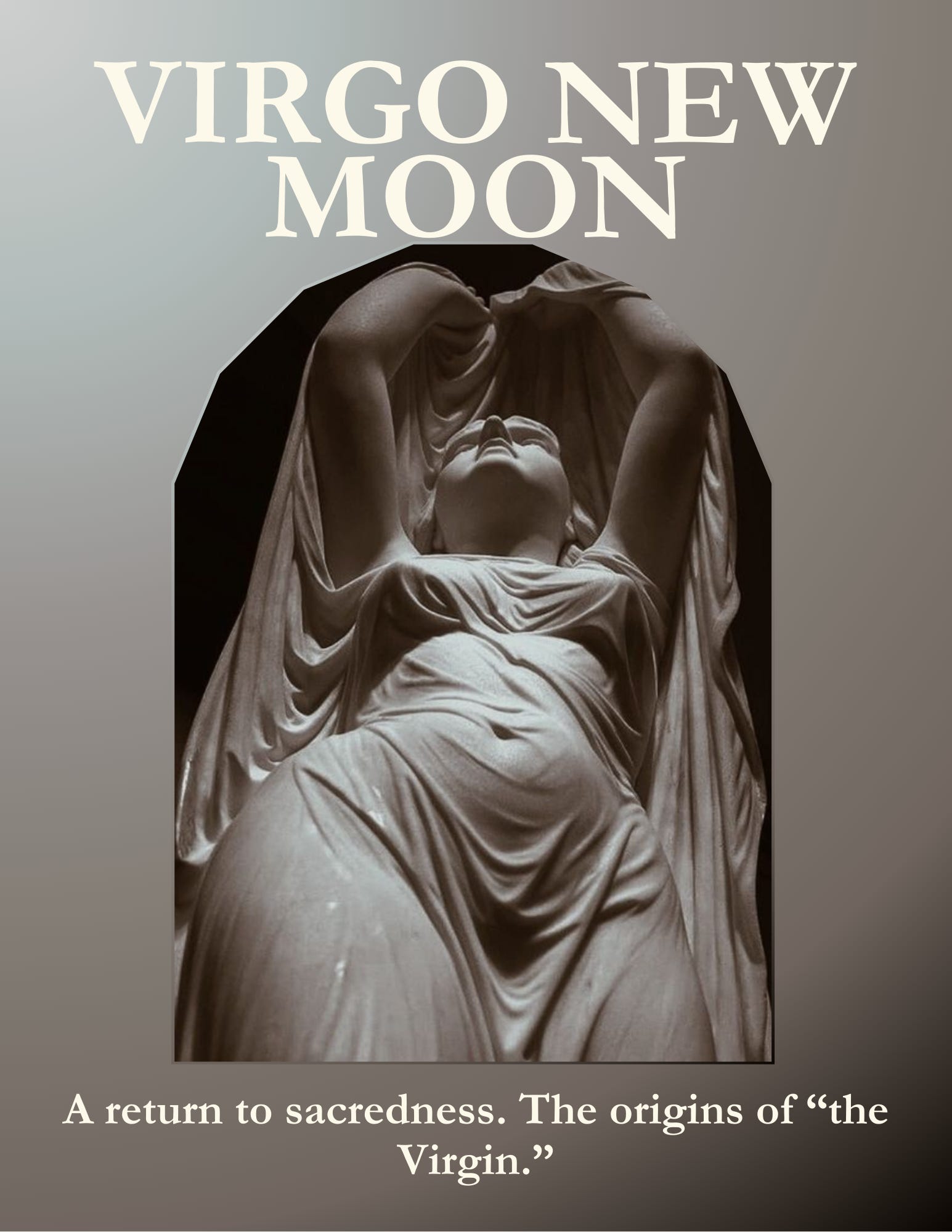 Now, how does this tie into the new moon and Virgo season as a whole? This moon intends to remind each of us that virginity belongs to everyone and invites us to ponder how we might more clearly define the intentions behind our actions, choices, and habits. It invites us to, like the Virgins, make each movement an act of devotion to the god-essence within your temple, the soul that occupies your body. How is it asking you to show up?